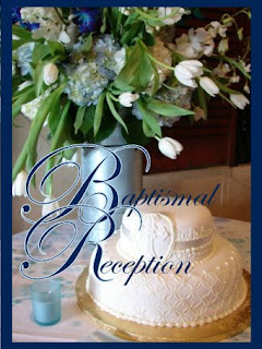 This Baptismal Reception was so beautifully done...My friend, Lisa McCall has impecable taste...this is the reception she organized for her son, Brennan. It was held at a local restaurant. The decor was simple yet elegant. A mix of flowers were used and ribbons were wrapped around the vases....Paper balls hung throughout the space.
